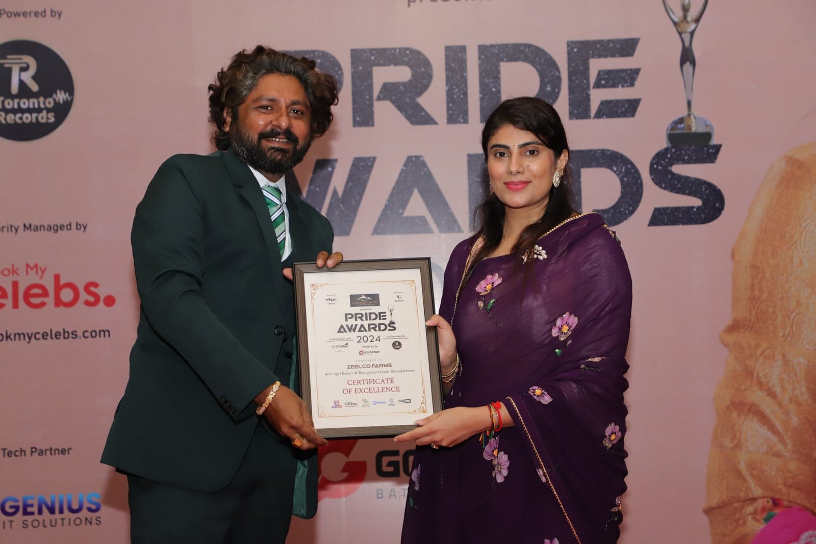 Joshi’s innovative approach to greenhouse manufacturing and his contributions to agricultural modernization were further recognized when he received the Pride Award 2024-25 in the categories of Agri Expert and Best Greenhouse Manufacturer. The award ceremony, held on October 5, 2024, saw two prominent personalities—Bollywood actress Esha Deol and MLA Rivaba Jadeja—present the honors, adding a touch of glamour and significance to the event.