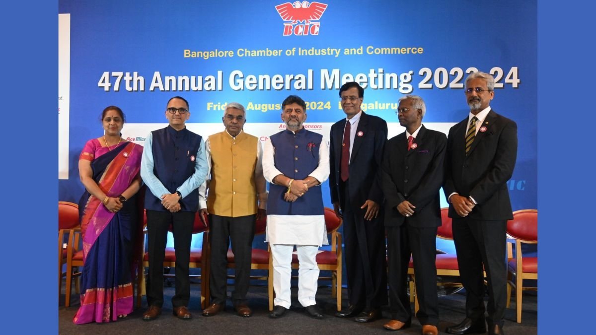 Bengaluru (Karnataka) [India] August 5 : The Bangalore Chamber of Industry and Commerce (BCIC) held its 47th Annual General Meeting (AGM) in the city today. The event witnessed a transition of leadership as the incumbent president Dr. S Devarajan, Sr. Vice President, TVS Motor Company Limited handed over the reins to president designate Vineet Verma, Director, Brigade Hospitality and Managing Director, World Trade Center, in the presence of Shri D. K. Shivakumar, Hon’ble Deputy Chief Minister of Karnataka, Dr M R Jaishankar, Chairman, Brigade Group and other office bearers of BCIC.
