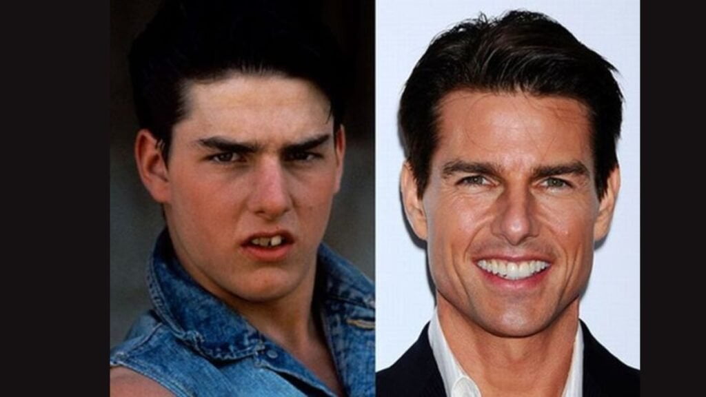 Tom Cruise, our beloved action hero and perpetual heartthrob, has a smile that’s just as charming as his daredevil stunts. However, it wasn’t always so. In his early years, Mr. Cruise sported a set of chompers that could be described as “ruggedly authentic.” Enter the dental maestros with their veneers and braces! Yes, braces. Tom underwent orthodontic treatment in the early 2000s, famously sporting clear braces, followed by a set of immaculate veneers. The result? A smile that’s as unstoppable as Ethan Hunt himself.