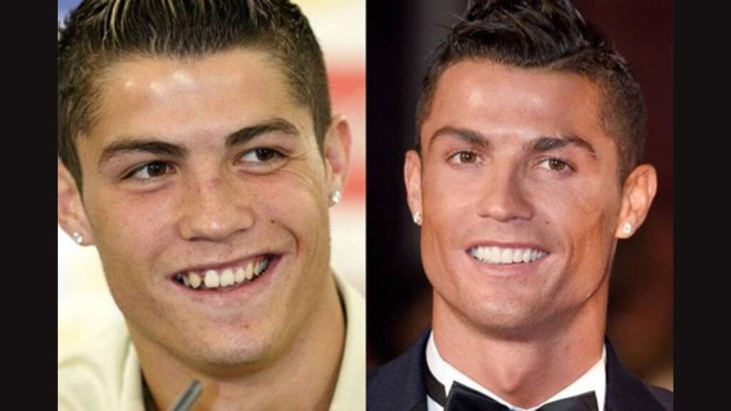 Cristiano Ronaldo, the Adonis of the football field, didn’t always have teeth that matched his godlike physique. Photos from his early career reveal a set of teeth that were, let’s say, more a “work in progress” than “work of art.” Ronaldo’s dental transformation included orthodontic treatments, teeth whitening, and veneers. Now, his smile is as bright and perfectly aligned as his footwork, making him a superstar on and off the pitch.