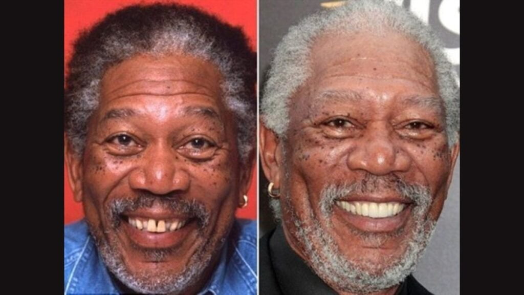 Morgan Freeman, with his soothing voice and grandfatherly wisdom, also invested in his pearly whites. The venerable actor underwent dental bonding to fix gaps and chips, giving him a more polished and cohesive smile. Freeman’s teeth were subtly perfected, maintaining his distinguished look while ensuring his smile remained camera-ready for any close-up narration.