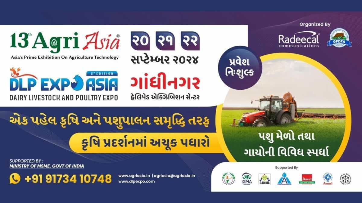 Vadodara (Gujarat) September 5: The 13th Agri Asia 2024 is set to take place from September 20th to 22nd, 2024, at the Helipad Exhibition Centre in Gandhinagar, Gujarat. This esteemed event will highlight the latest innovations in agriculture technology and provide valuable networking opportunities for industry professionals.